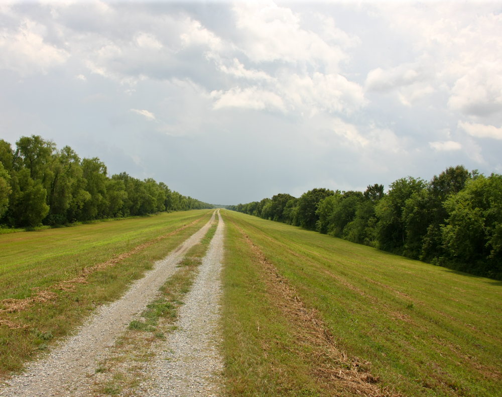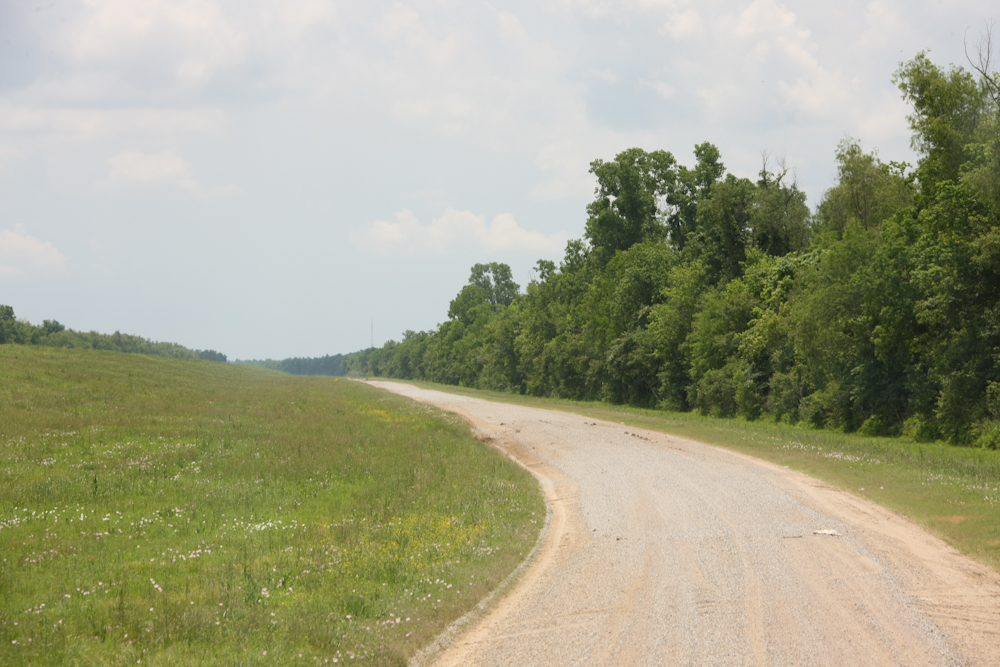 We broke camp at Allemond Point and headed down Henderson levee road.  Soon, the road turned into dirt and stayed that way for the balance of the trail.  The levee is about 20 feet above the road, on the left.