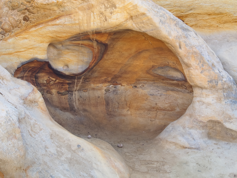 There were a number of interesting shapes that had eroded into the coastal formations.  This alcove showed evidence of included cobbles in the formation.