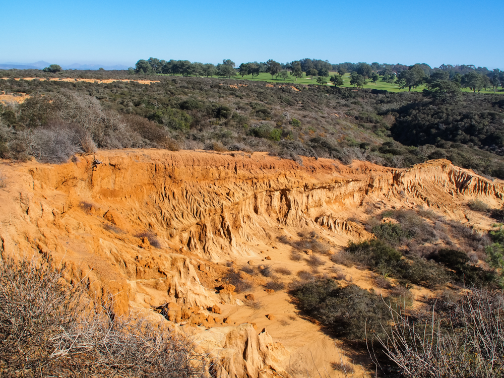 The world-class golf course at Torrey Pines is visible at the crest of the hill.