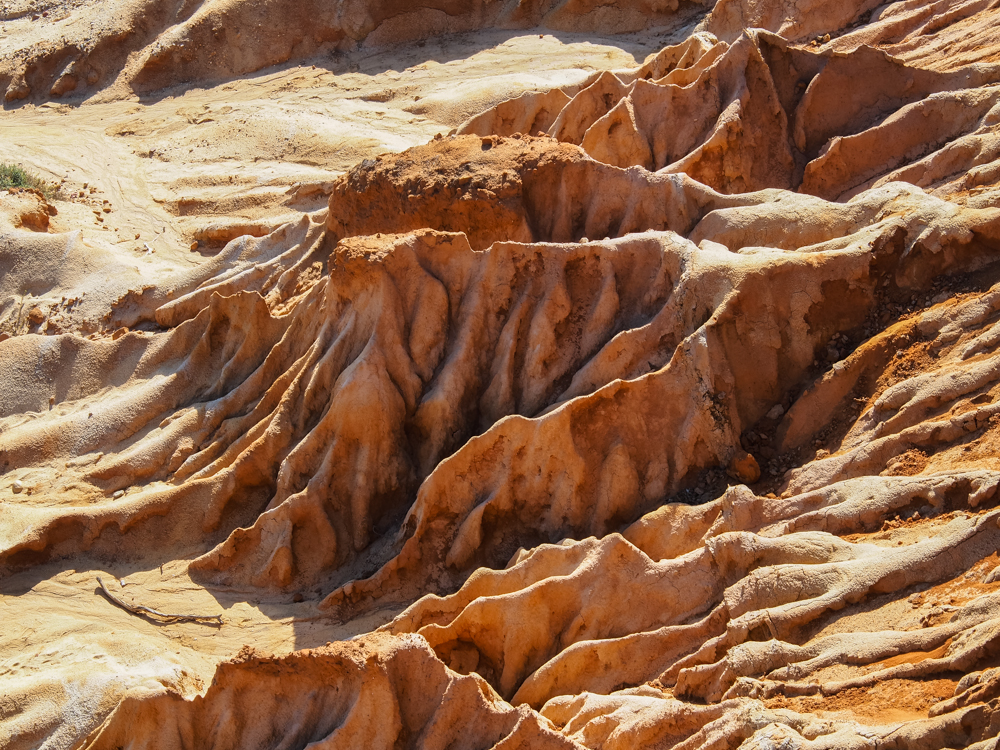 The soft material of the upper layers produce interesting erosion patterns similar to the formations in southern Utah.