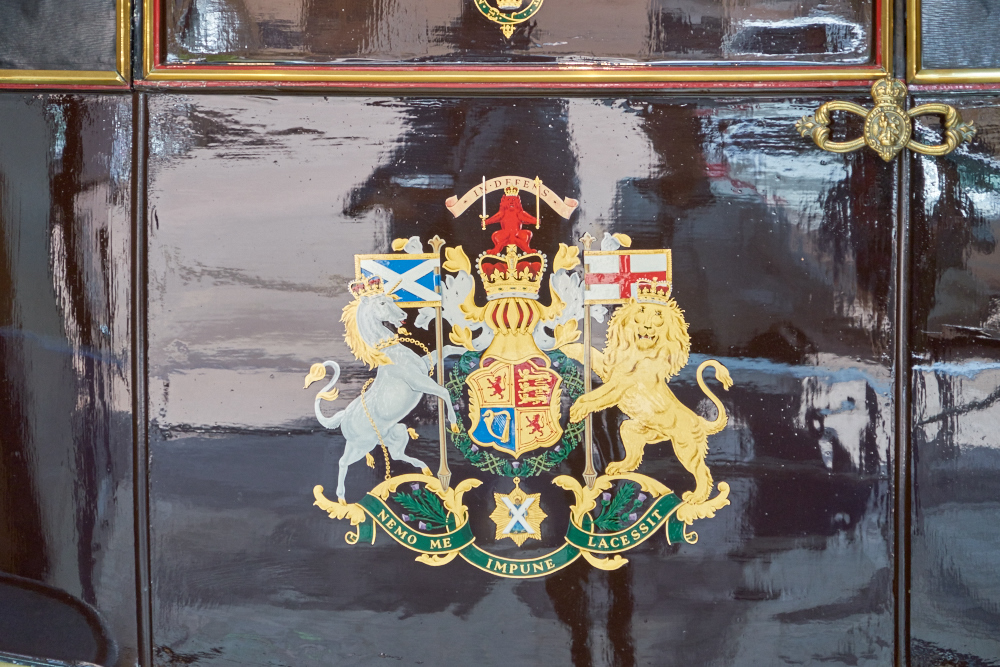 royal crest with the latin equivalent of "No one can harm me