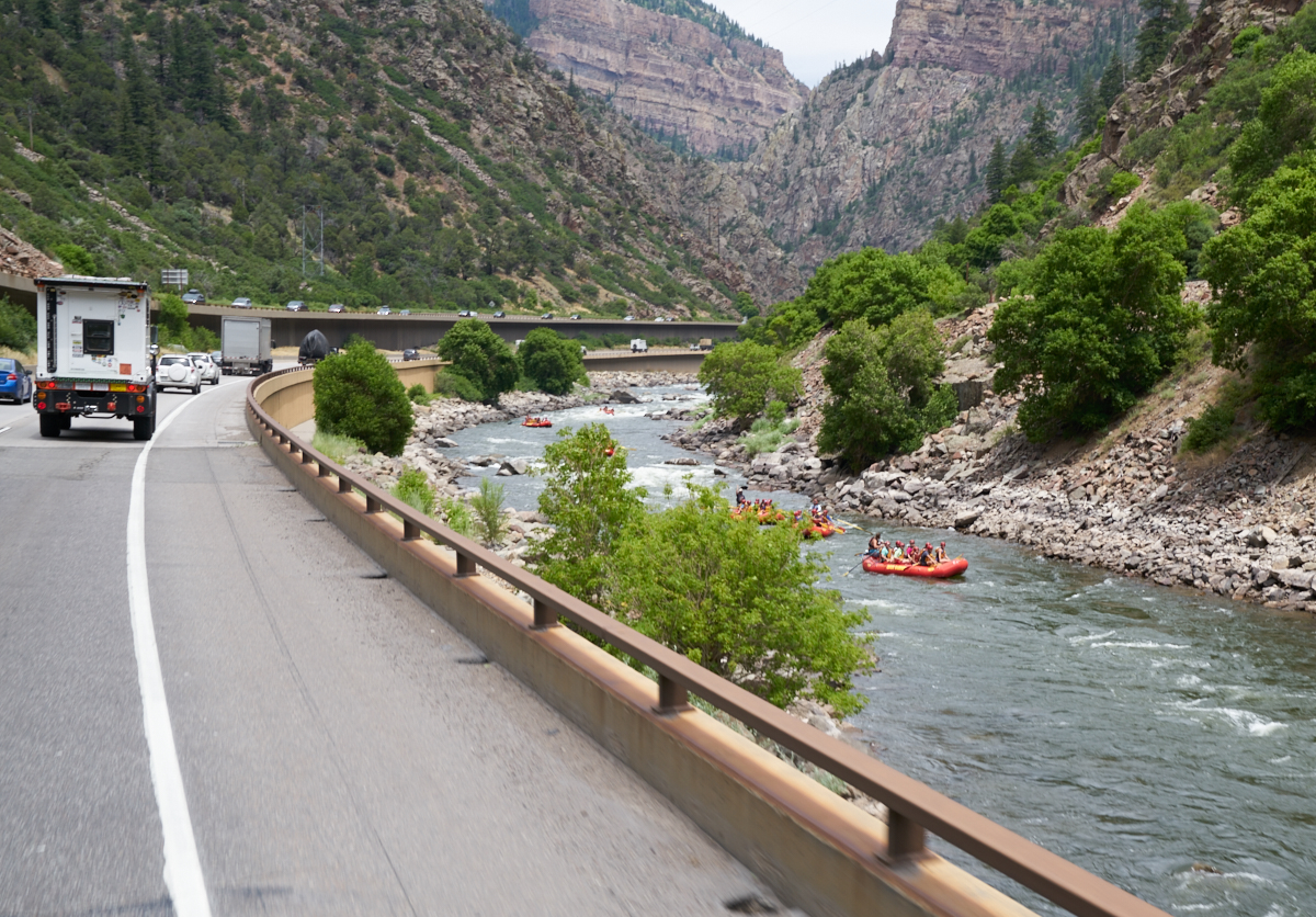 travels along the Colorado River in Glenwood Canyon. This