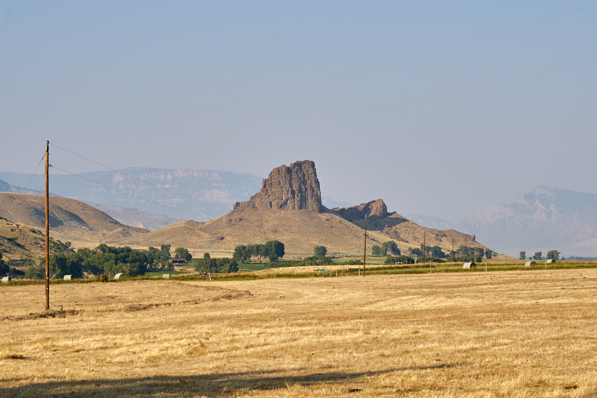 the ranch is Castle Rock, a volcanic plug. Note the haze