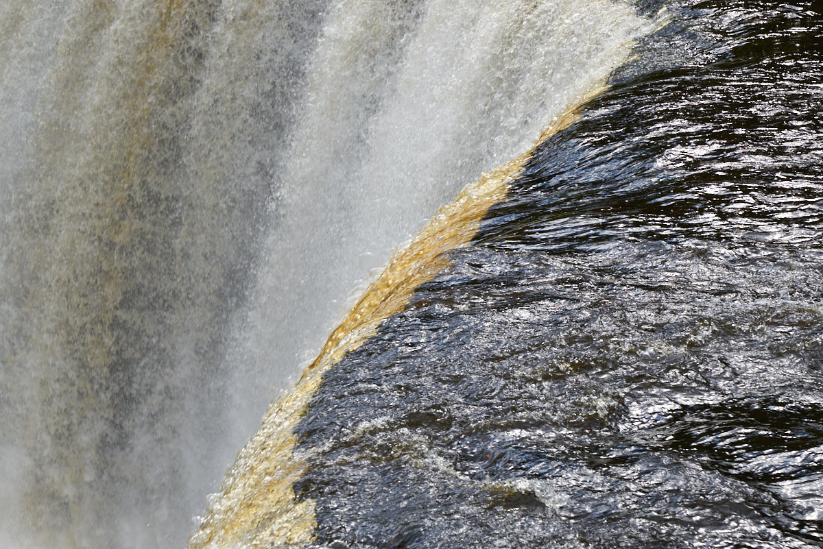 becomes visible as the water hits the crest of the waterfall.