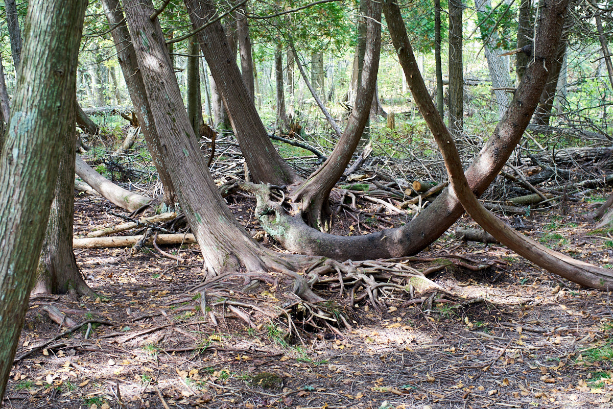 trees. The roots and curved branches produced a tangled