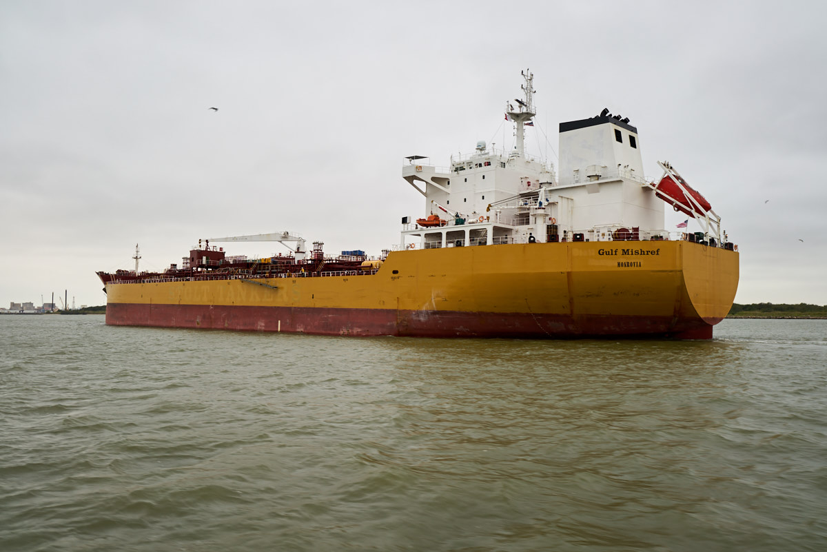a nice view of a passing tanker ship registered in Monrovia