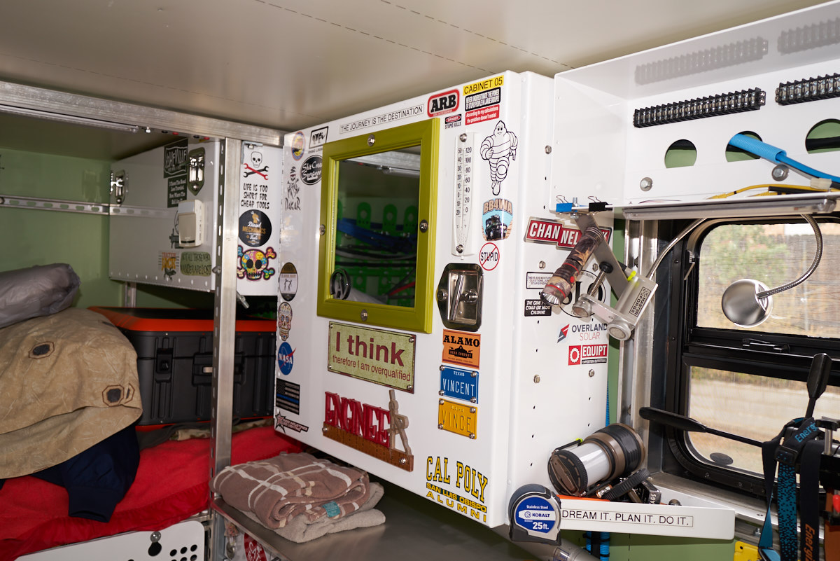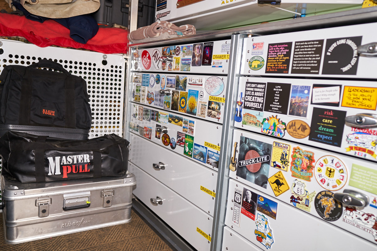 inside of the shelter uses ProTech tool boxes as cabinets.