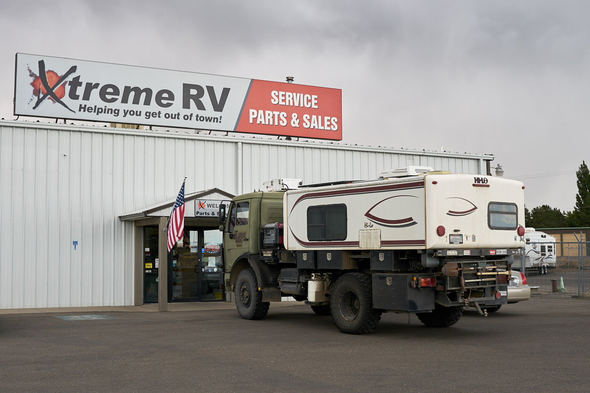 The following morning, we pulled into the parts store next  door to get some gadgets.  The facility name was "Xtreme RV" so it seemed appropriate to take a photo of my extreme RV next to their sign.  When we finished at the store, we headed to see the falls.