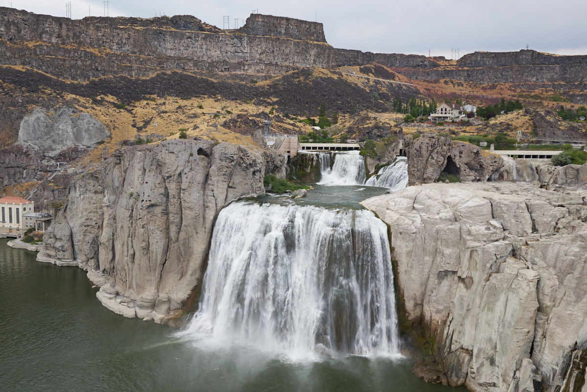 Like many falls on the Snake River, there is a dam and power plant to serve the locals.  Above is the lake upstream of the dam.