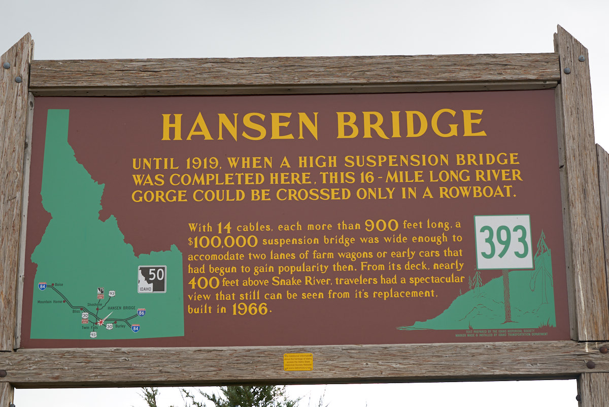 The Snake River Canyon presented a major obstacle to travel in the area.  We had to traverse the canyon to get from the RV park to Twin Falls.  Crossing the  bridge allowed a view of the canyon.  The bridge is one of the few places where you can cross the river.