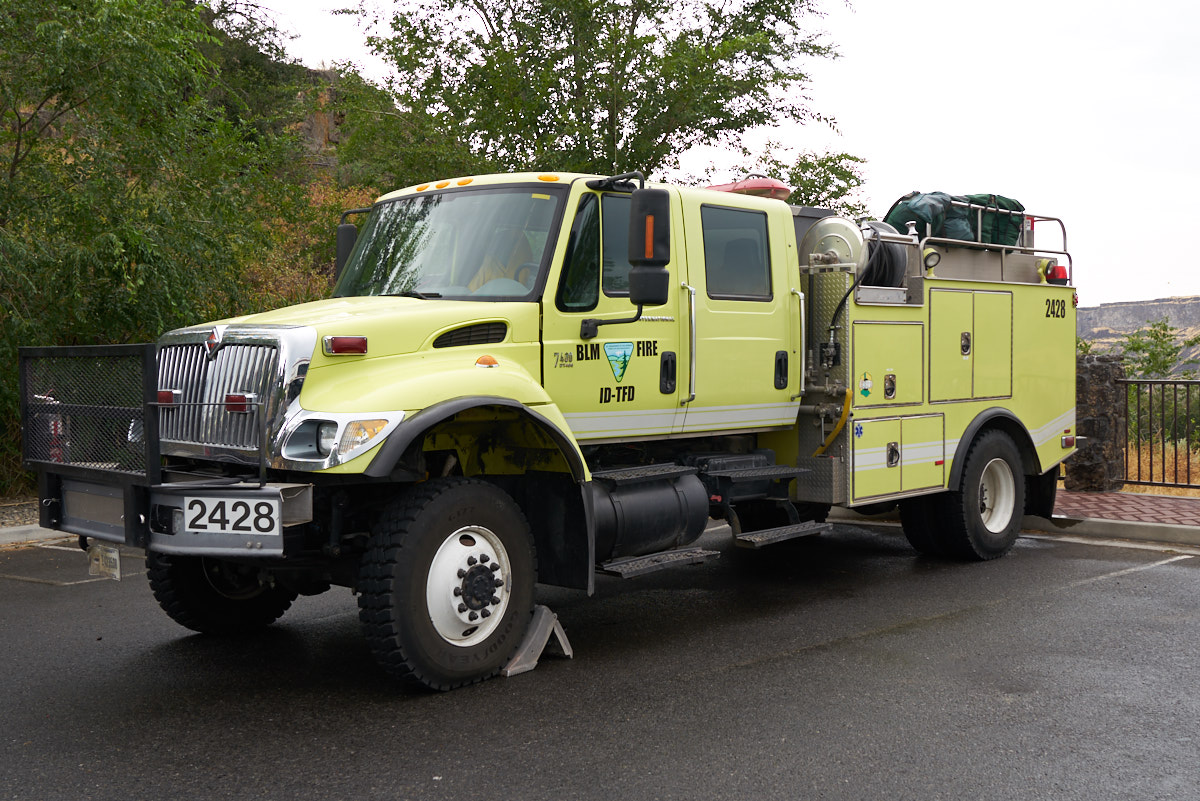We followed the river west to the actual falls on the Snake River where we encountered this BLM wildland fire rig parked at the falls.