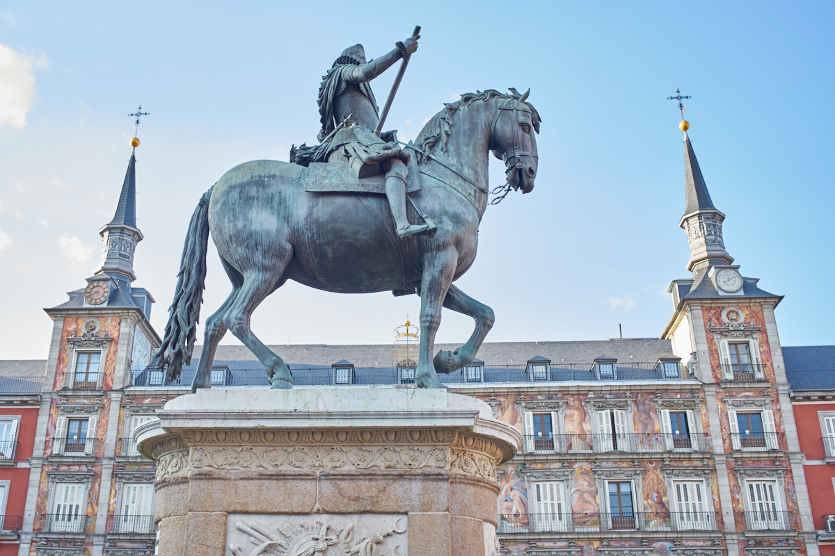 "famous dead dude" on a horse in the middle of Plaza Mayor.