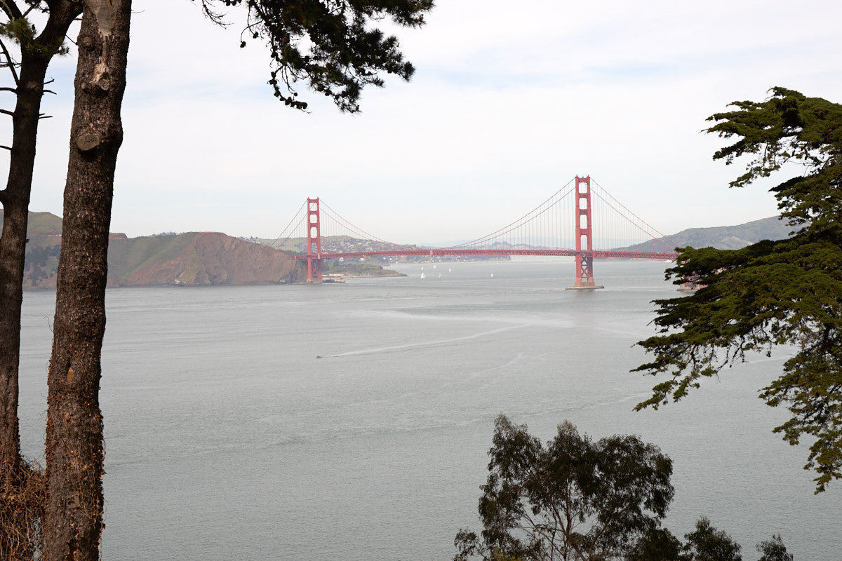 Rounding the point on the trail we got our first clear view of the Golden Gate Bridge.