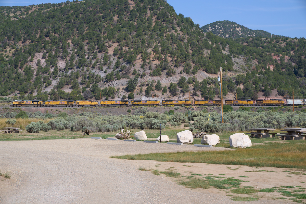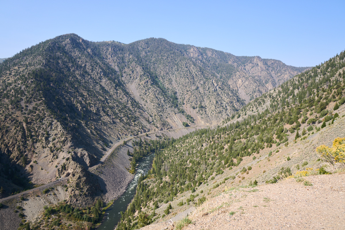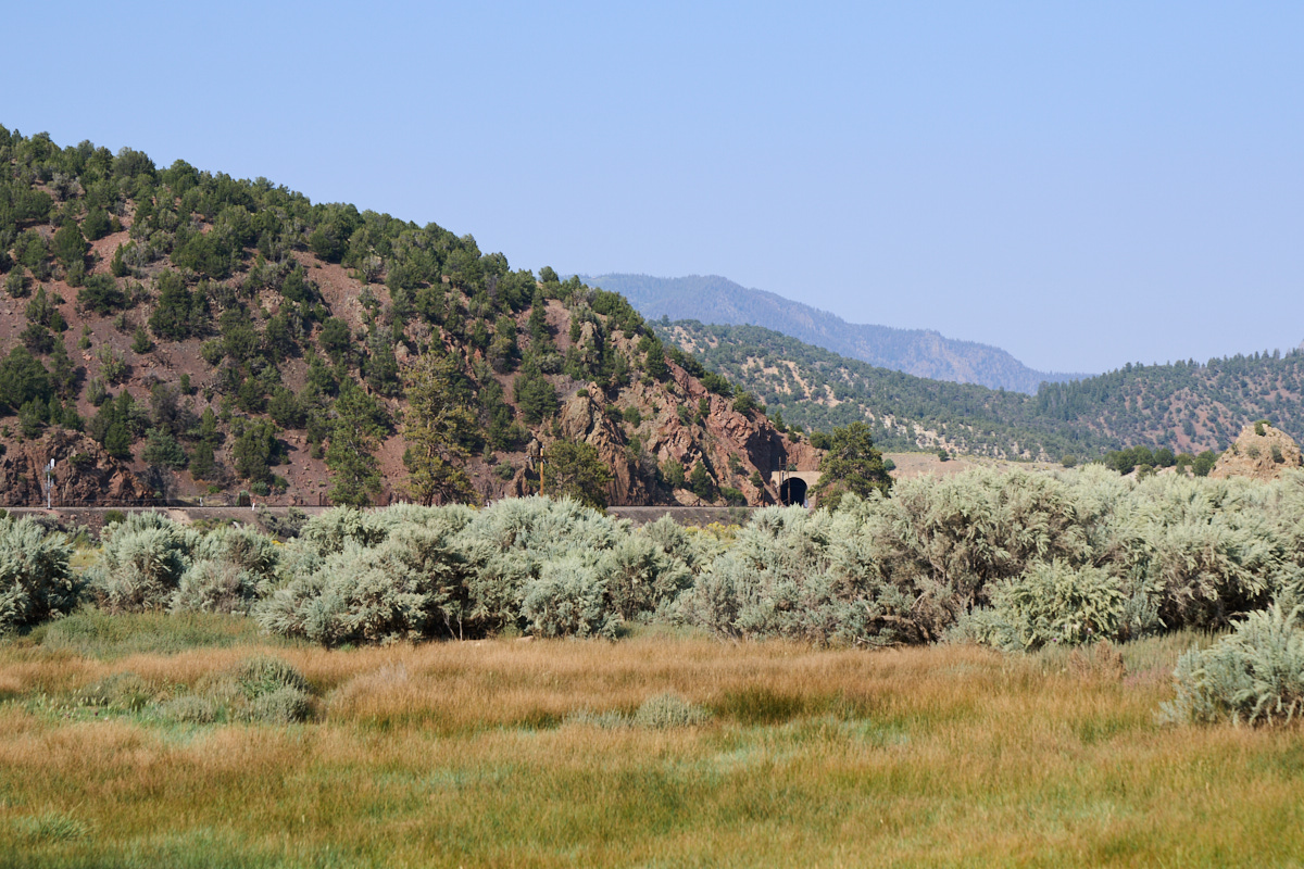 We continued south from Saratoga over the Laramie Divide into Colorado.  We passed through Kremmling and then turned west on the Trough Road which took us high above the Colorado River.  In this region, the BNSF main line follows the banks of the Colorado and the tracks are visible in the photo above.
