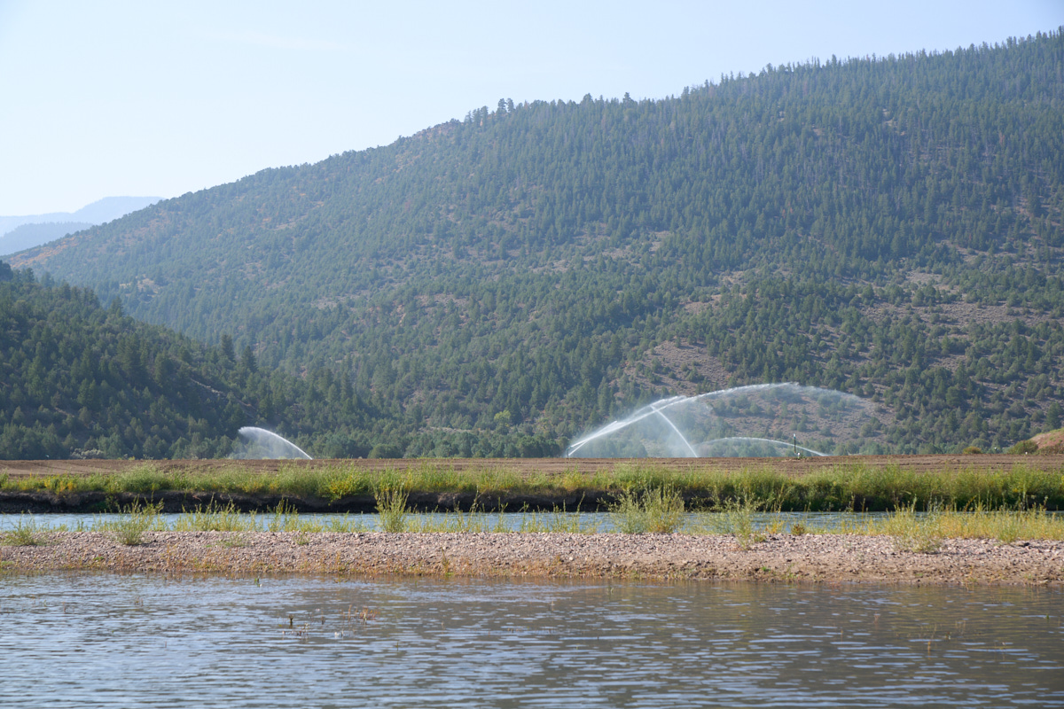 Across the river we could see active irrigation in progress.  Pipes were run to the banks of the river and diesel pumps were used to supply the pressure required for the sprinklers.