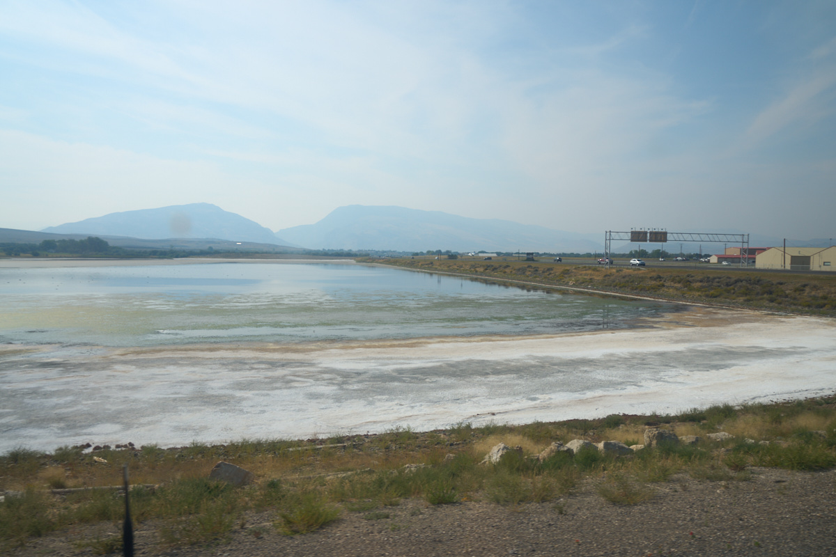 On the east side of Cody we could see the effects of the extended drought on a local water storage area.  The concentrated salts in the water turned the ground white.  This area, like most of the West, has suffered from the extended drought and these salt deposits are but one of many examples of the impact of the drought.