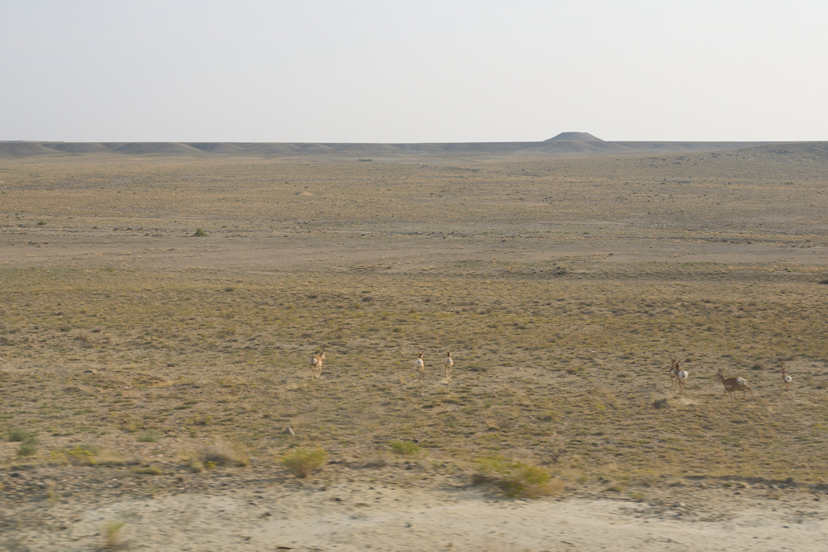 As we motored south, Thor scared up a small herd of Antelope that were grazing near the road.  This is barren country, barely fit for man or beast.  Note the volcanic cinder cone on the horizon.