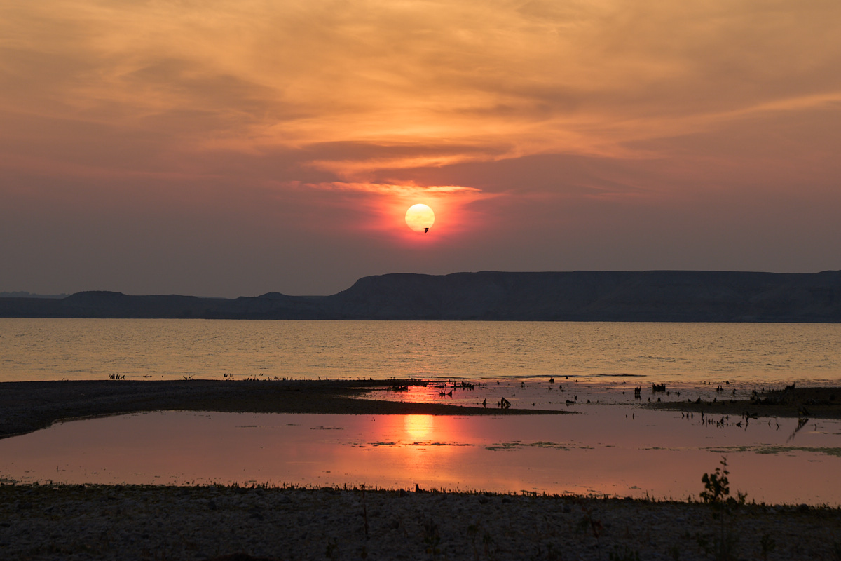 The only good thing that came from the smoke in the air was a nice sunset.  I was a fraction of a second too slow on the shutter to catch the bird in the middle of the sun.