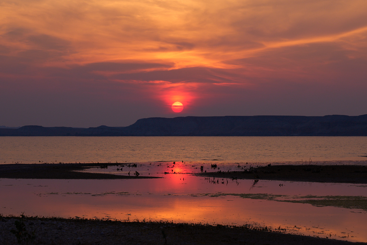 The following morning was not as smokey, but the extent of the drought was evident in the wide beaches at the reservoir.