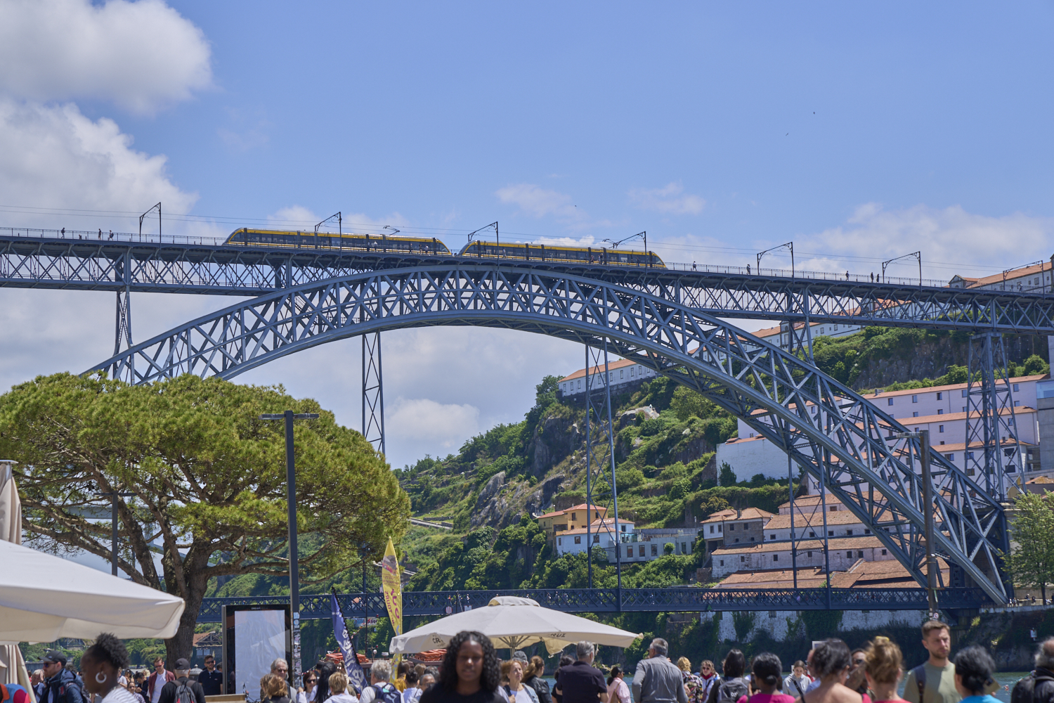 iron bridge with a Metro tram heading south. This bridge