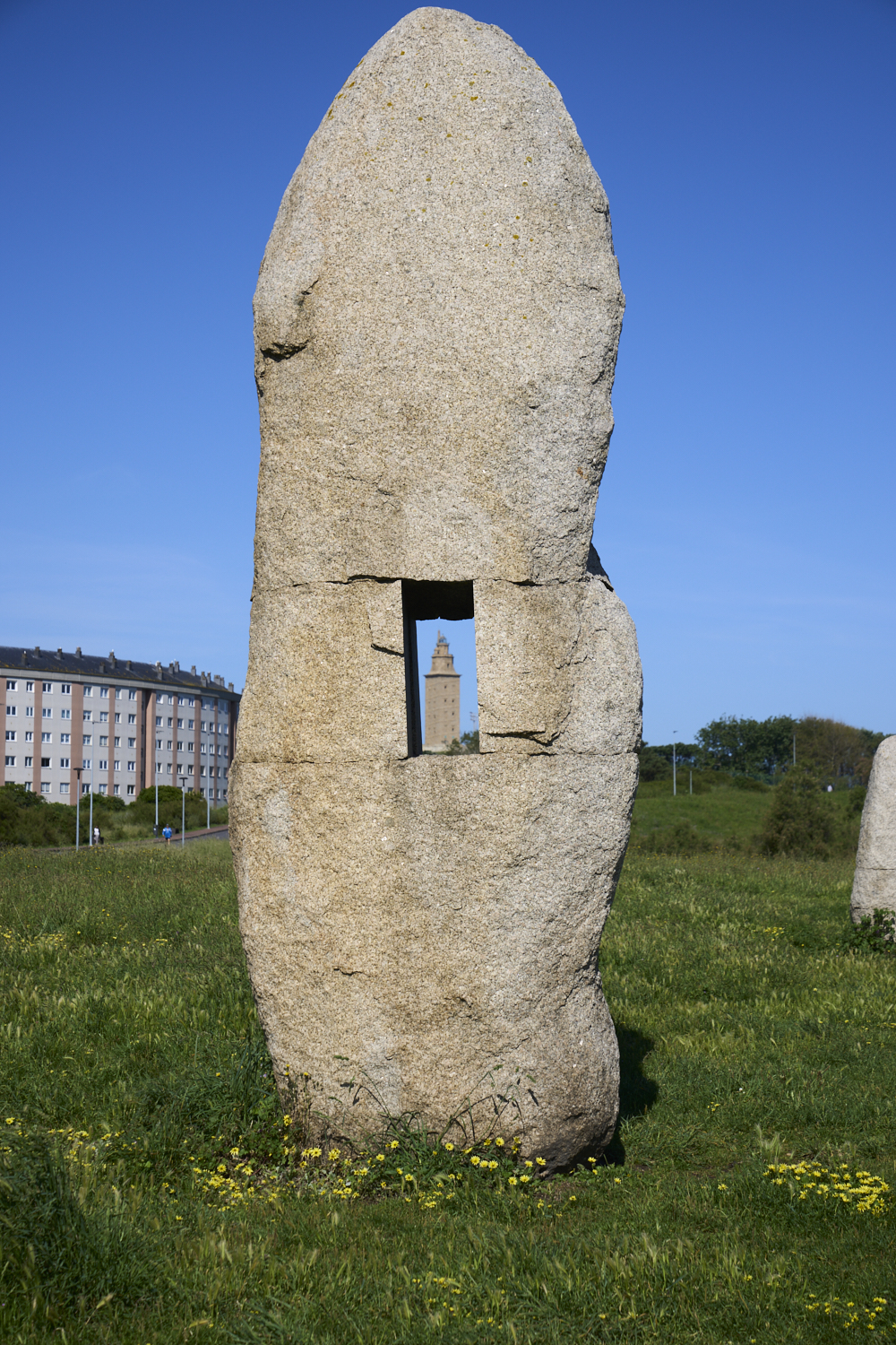 the Tower of Hercules through the carved window.